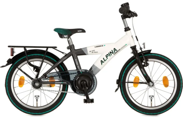 De Alpina Yabber kinderfiets is een hippe jongensfiets of stoere meisjesfiets. Altijd keuze uit meerdere kleuren. En afgewerkt met de leukste details op het frame, zadel en de banden. De Alpina Yabber 18 inch heeft een krachtige en betrouwbare terugtraprem met een handrem voor. In de wielen zitten reflectoren voor extra zichtbaarheid.  En deze fiets heeft een bagagedrager. De Alpina Yabber 18 inch is geschikt voor kinderen tussen de 5 en 7 jaar en heeft een framehoogte van 28 cm.