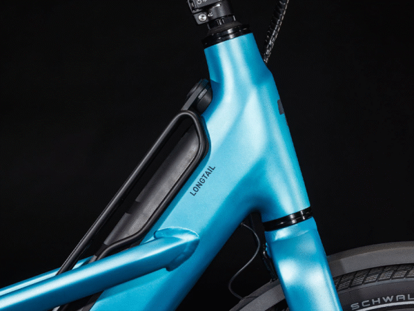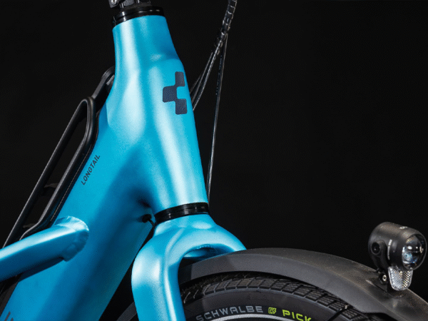 Een vrachtfiets moet vooral praktisch zijn, toch? Je vindt daarom in de Cube Longtail Hybrid een soepele en krachtige Bosch Cargo-motor, met een grote 750 Wh accu als voeding. Zo kom je tijdens het vervoeren van je spullen noch ondersteuning noch stroom tekort. Een geruststellende gedachte. De Cube Longtail e-bike met riemaandrijving kan in totaal 220 kilo met zich mee brenen, waarvan 60 kilo door de verlengde achterdrager getorst kan worden. Op deze drager passen vier standaard fietstassen, twee aan elke kant. Daarnaast bestaat de mogelijkheid een standaard Eurobox te plaatsen. En ook de voorkant van de fiets biedt ruimte aan een extra, optioneel verkrijgbare drager. We hebben zelfs gedacht aan een klein, afsluitbaar opbergvak in de onderbuis.